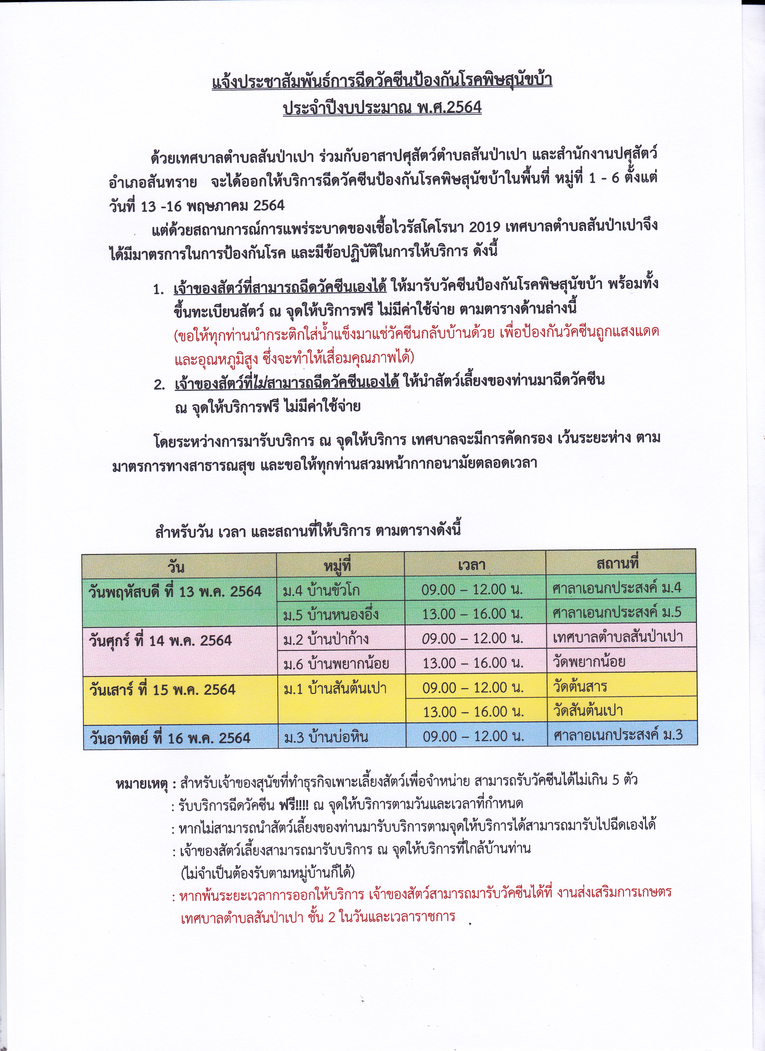 แจ้งประชาสัมพันธ์การฉีดวัคซีนป้องกันโรคพิษสุนัขบ้า