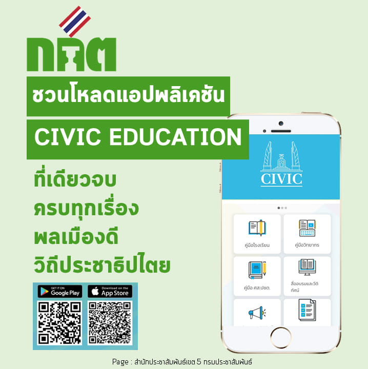 แจ้งข่าวประชาสัมพันธ์จากสำนักงานคณะกรรมการการเลือกตั้ง การดาวน์โหลดแอปพลิเคชัน Civic Education
